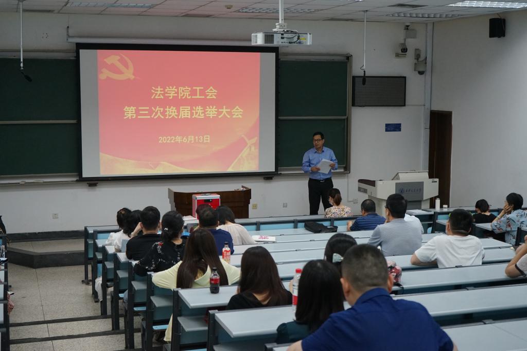 2022年6月13日下午,k8体育·(sports)官方网站在兴庆校区主D-106教室召开全院教职工大会,圆满完成k8体育·(sports)官方网站第三届工会委员会选举、k8体育·(sports)官方网站第十一届教代会暨第十六届工代会代表选举以及k8体育·(sports)官方网站第十六届工会委员会委员候选人提名推荐等工作。会议由k8体育·(sports)官方网站党总支书记王保民主持。