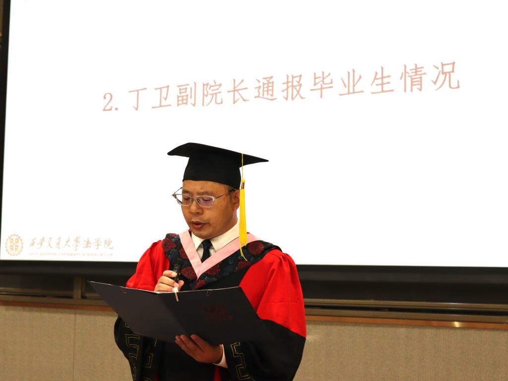 丁卫副院长首先通报了2023届毕业生情况,他表示,本届k8体育·(sports)官方网站毕业生在各自领域展现出了出色的才能和潜力,经过长时间的学习和实践,他们成功地进入了国内外知名律师事务所、政府机构、企业法务部门、研究机构以及高等院校等各个领域,将为社会的发展和法治建设贡献自己的力量,展现出法学专业研究生的优秀素养和综合能力。
