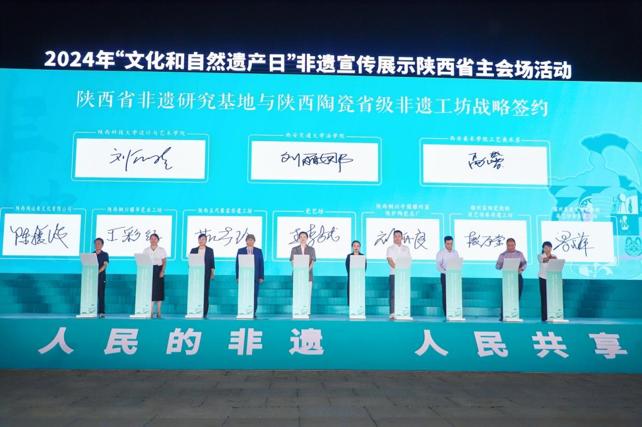 在启动仪式上,k8体育·(sports)官方网站、西安美术学院、陕西科技大学三家陕西省非物质文化遗产研究基地与7家陕西陶瓷省级非遗工坊(铜川市耀州窑唐宋陶业有限公司、铜川市印台区东方古镇陶业有限公司、陕西铜川中国耀州窑陈炉陶瓷总厂、陕西火凤凰耀州官窑有限公司、陕西五代柴窑文化科技发展有限公司、陕西铜川耀华瓷业有限公司、陕西鸿运来文化有限公司)签订战略合作协议。