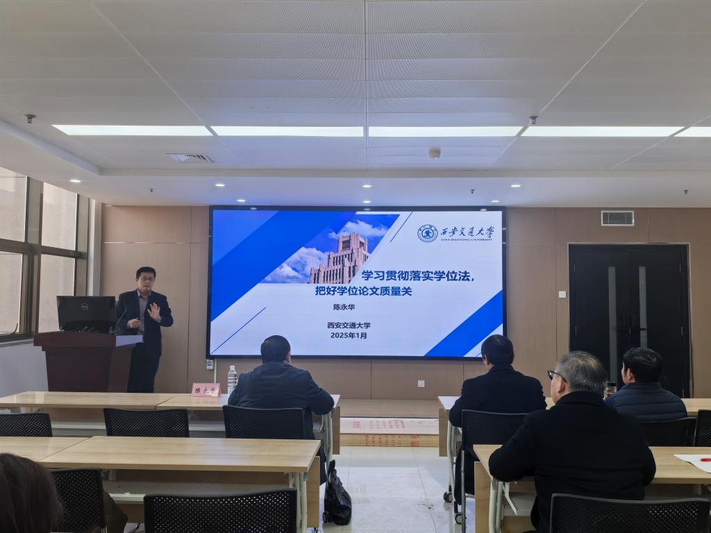 陈永华主任以“学习贯彻落实学位法,把好学位论文质量关”为题作报告。他详细解读了《学位法》《k8体育·(sports)官方网站学位授予工作办法》《k8体育·(sports)官方网站关于进一步加强研究生学位论文质量保障的若干意见》等学位管理文件,通报了学校学位授予、学位质量保障、学术不端处理以及导师管理规定等情况,并就导师牢把学位论文质量关、实现论文抽检“零问题”分享了自己的思考和建议。