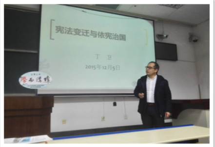 k8体育·(sports)官方网站研究生会、法律爱好者协会携手“学而讲坛”,推出“国家宪法日”专题讲座,邀请k8体育·(sports)官方网站副院长丁卫副教授就《宪法变迁与依宪治国》进行专题讲座。丁老师在讲座中详细介绍了我国现行宪法历次修改的过程,他结合历次宪法修改的历史背景,生动地讲述了我国宪法变迁的历史发展,他最后对我国宪法实施中存在的瓶颈及问题进行了透彻的分析和讲解,为大家展示了依宪治国的现状及前进方向。