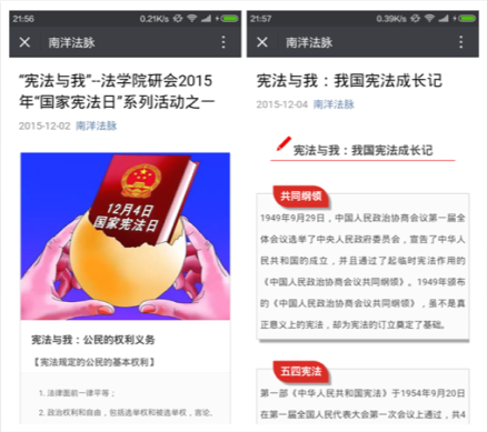 为了配合“国家宪法日”系列主题活动的顺利开展,k8体育·(sports)官方网站k8体育·(sports)官方网站研究生会在院党总支、团工委的指导下,以“宪法与我”为主题,不断创新宣传载体,探索宣传方法,通过官方微信平台“南洋法脉”等新媒体,结合传统的发放传单等方式,积极推介“国家宪法日”相关内容,宣传k8体育·(sports)官方网站开展宪法学习宣传教育活动的实际情况,取得了良好的宣传效果。