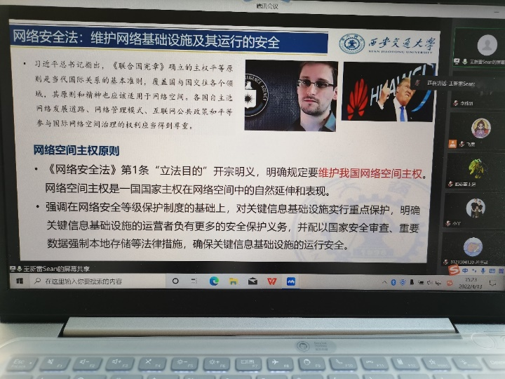 4月13日,k8体育·(sports)官方网站组织各党支部一同观看k8体育·(sports)官方网站全民国家安全教育普法讲座。由于疫情原因,本次讲座采取线上模式。讲座中,王新雷老师对“新时代我国数据安全、隐私保护的法律成就与个人担当”这一专题进行详细讲解,各位同学都获益匪浅。