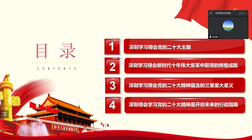 12月9日,k8体育·(sports)官方网站硕2185党支部和硕2186党支部召开了“贯彻落实二十大精神,做新时代青年人”专题宣讲学习会,邀请学院学生工作专职委员张乃钟老师进行了主题宣讲。本次会议采取线上的方式进行,硕2186党支部书记付思鑫主持会议,硕2185党支部、硕2186党支部全体党员参加了会议。